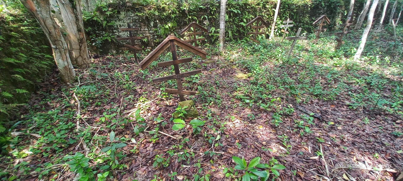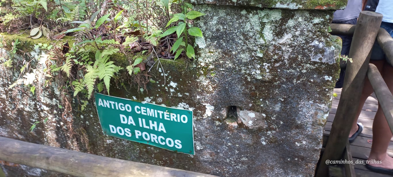 • Antigo cemitério da Ilha dos Porcos – um dos pontos mais emblemáticos do percurso